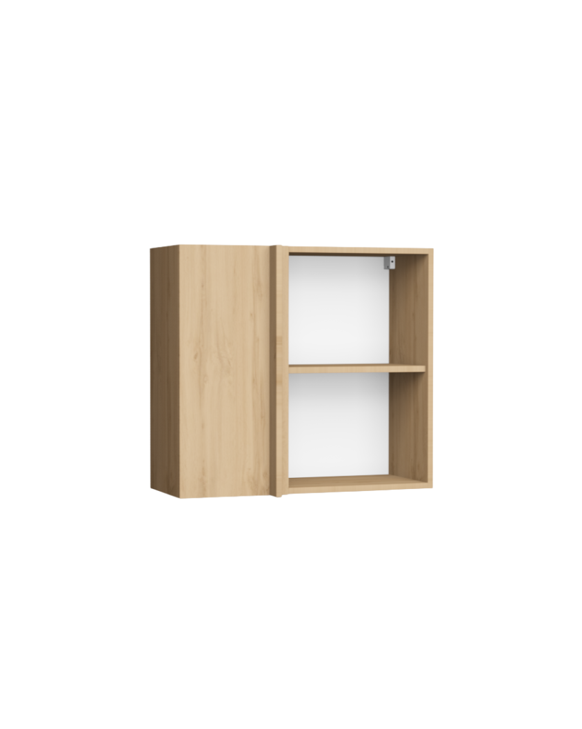 Funkcjonalny i solidny korpus kuchenny górny rogowy, zaprojektowany z myślą o efektywnym zagospodarowaniu narożników w górnej zabudowie kuchennej. Dzięki praktycznej półce umożliwia wygodne przechowywanie naczyń, produktów spożywczych i akcesoriów kuchennych.