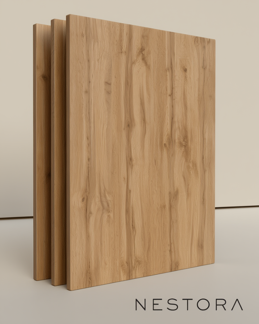 Dzięki możliwości cięcia płyty na dowolny wymiar, produkt można precyzyjnie dopasować do konkretnego projektu — bez strat materiału i konieczności dodatkowej obróbki we własnym zakresie. To praktyczne rozwiązanie zarówno dla stolarzy i producentów mebli, jak i klientów indywidualnych realizujących meble na zamówienie.